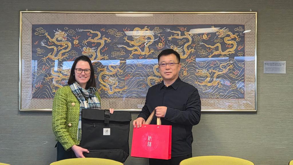 1月13日,长春光华学院副校长厉刚率团赴英国爱丁堡龙比亚大学开展交流访问,与该校国际事务副校长Ms.Naomi Graham、商学院副院长Prof.Nathalia Tjandra举行工作会谈。我校国际交流学院院长吴影、跨文化研究院院长Frank Hang XU陪同参加会见。