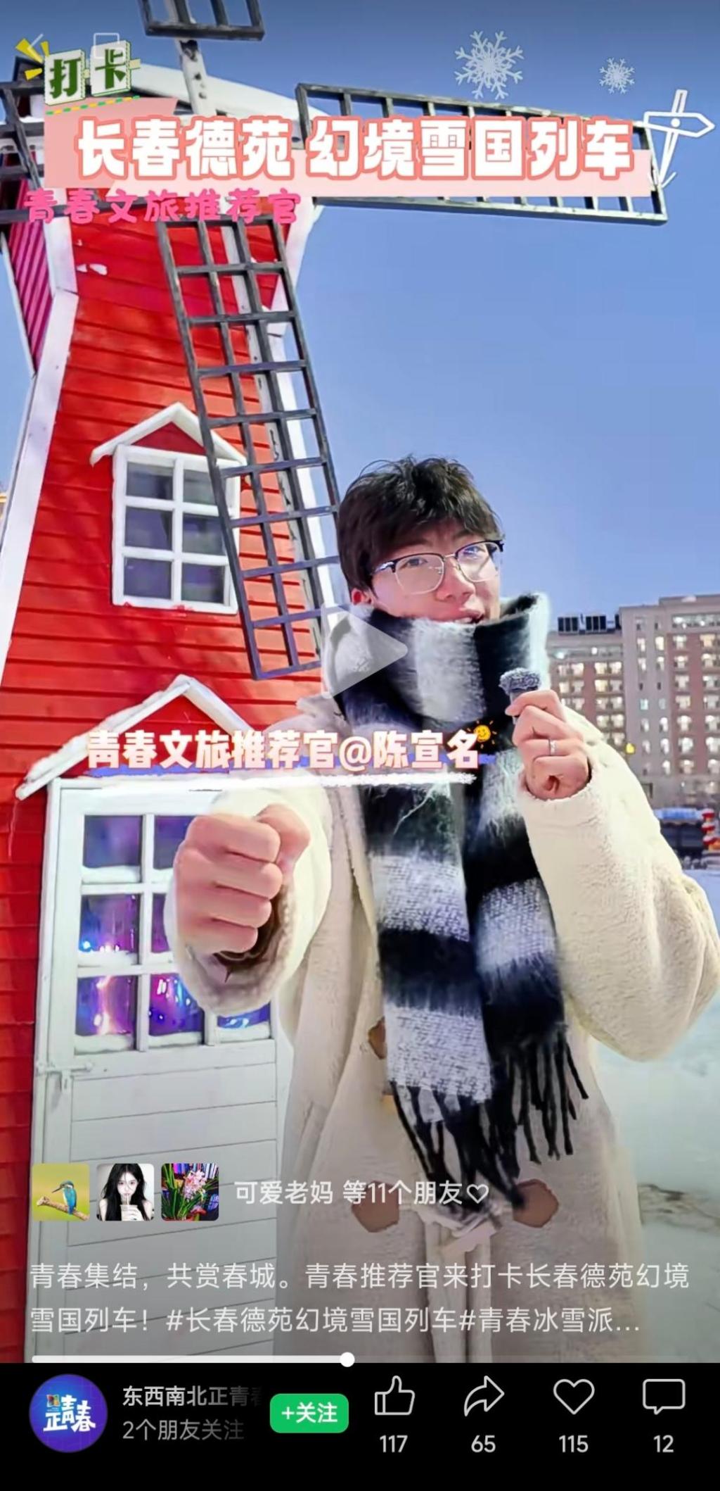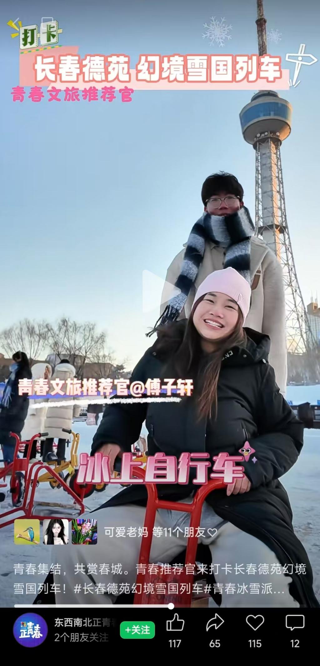 聚焦地方文化,赋能冰雪经济。银装素裹的吉林大地寒意正浓,冰雪魅力却愈发彰显,12月27日,我校创新创业社团负责人、电影学院谢雨蒙同学带领多位成员,受邀参与吉林日报东西南北杂志社组织的冰雪主题拍摄活动,以青春视角践行“冰天雪地也是金山银山”的发展理念。接到邀请后,学子们结合双创实践经验,深入研读吉林冰雪资源特色与拍摄需求,精心打磨拍摄方案。在拍摄现场,他们穿梭于晶莹冰雕群与古朴冰雪村落之间,用专业镜头捕捉冰上运动的灵动、雪地嬉戏的欢腾、雾凇奇景的静谧与冰雪灯光的璀璨,每一幅画面都饱含青年热忱与创意巧思。协作中,社团学子展现出扎实的专业素养与创新思维,大胆尝试短视频创作、创意构图等多元表现形式,让冰雪景观与青春活力碰撞出别样火花,为吉林冰雪旅游宣传注入新鲜血液。“走出校园将专业技能与地方文化传播结合,既感受到冰雪的震撼之美,更体会到青年在文化传承中的责任。”参与学子的感言道出了实践的深刻意义。