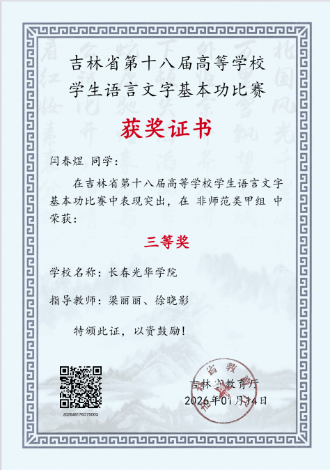 近年来,我校高度重视语言文字工作,持续深耕语言文字教学与实践,有效推动了学生语言素养的稳步提升。此次参赛取得的优异成绩,激发了学子们对语言文字学习的热爱。未来,我校各专业将继续扎实推进语言文字工作,以实际行动传承和弘扬中华优秀传统文化。(供稿单位 :文学院 编辑:刘安妮 责编:曹红梅 初审:郭齐齐 复审:谭宏姣 终审:赵 健)