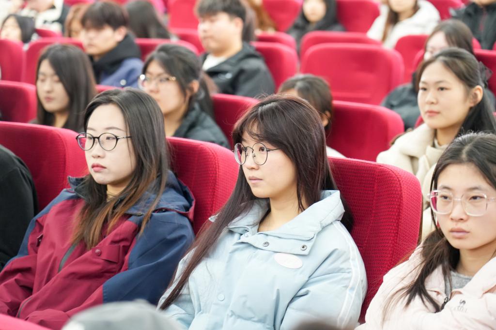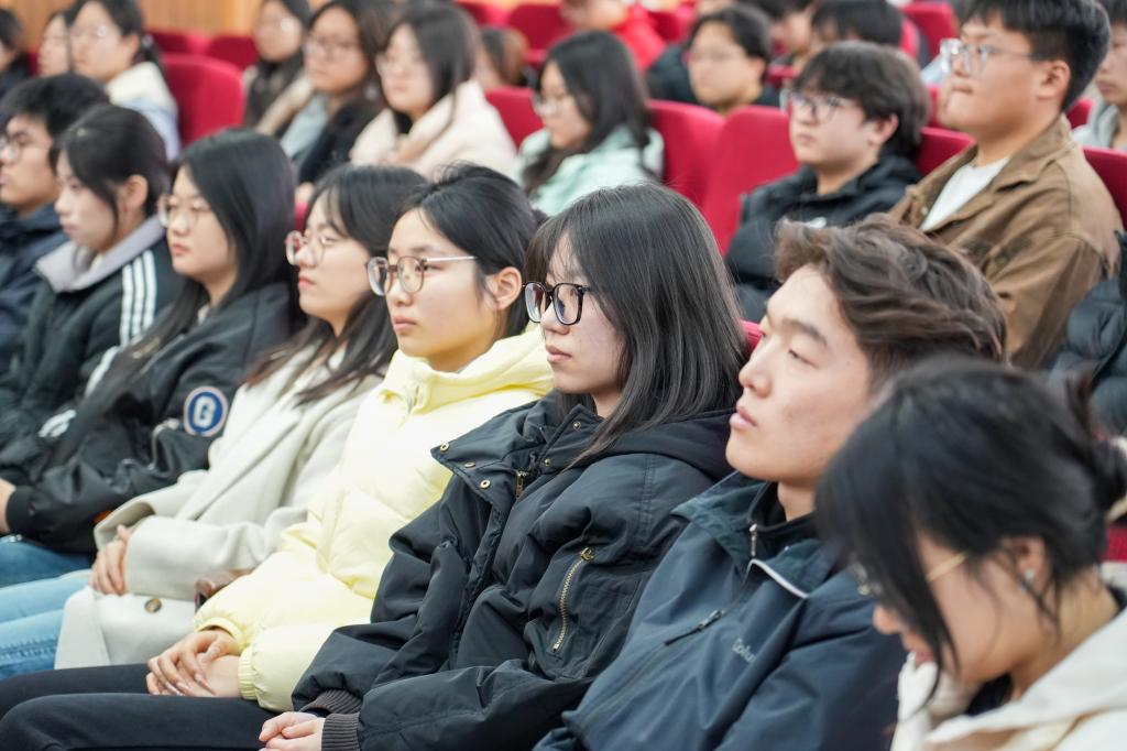 田志伟校友以“深耕职场·智领未来——基于TOGAF的人力资源数智化转型之路”为题,结合十余年职场经历和HR数智化转型实战经验,从求学与职场衔接、HR行业深耕历程、行业前沿与职业机遇三大板块为学弟学妹们破解就业难题提供多元路径。他为学弟学妹们梳理了校园知识与职场实战的结合技巧,给出学业规划与能力储备建议。还分享了面试技巧、职场软实力提升方法,内容兼具前沿性与实用性,贴合学生成长与职业发展需求,让在场师生受益匪浅。