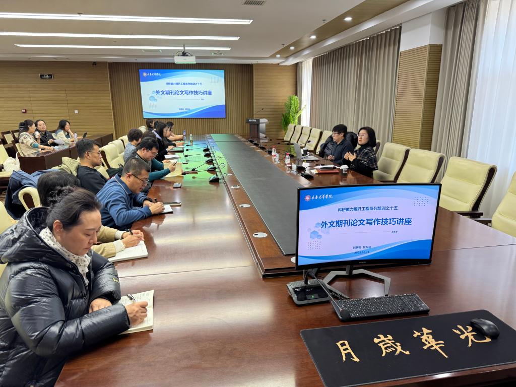 10月21日,由我校科研处与校科学技术协会联合主办的“科研能力提升工程系列培训之十五——外文期刊论文写作技巧”专题培训会顺利举行。本次培训特邀吉林大学商学与管理学院财务管理系林煜恩教授担任主讲,全校各学院30余名教师及科研处相关人员参加培训。会议由科研处处长张晓瑞主持。