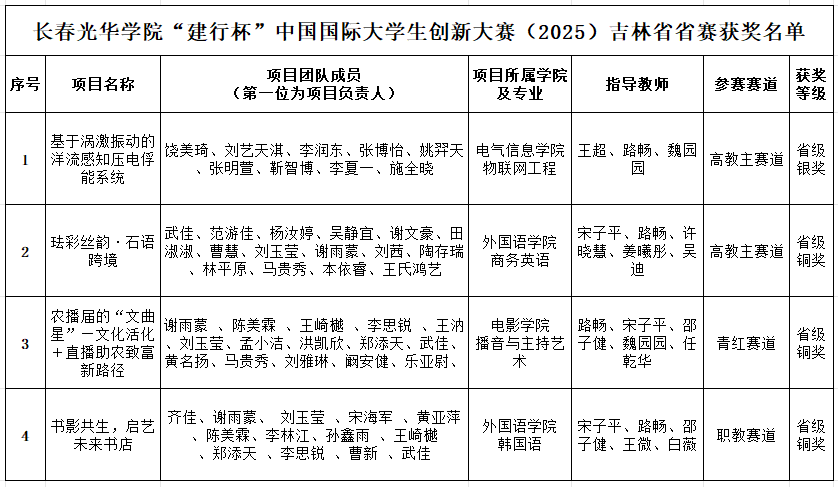 近日,“建行杯”中国国际大学生创新大赛(2025)吉林省省赛圆满落幕。我校学子凭借扎实的专业知识、卓越的创新能力和出色的团队协作,在全省众多参赛队伍中脱颖而出,斩获省级银奖一项、省级铜奖三项,充分展现了我校在创新创业教育领域的实践成果。
