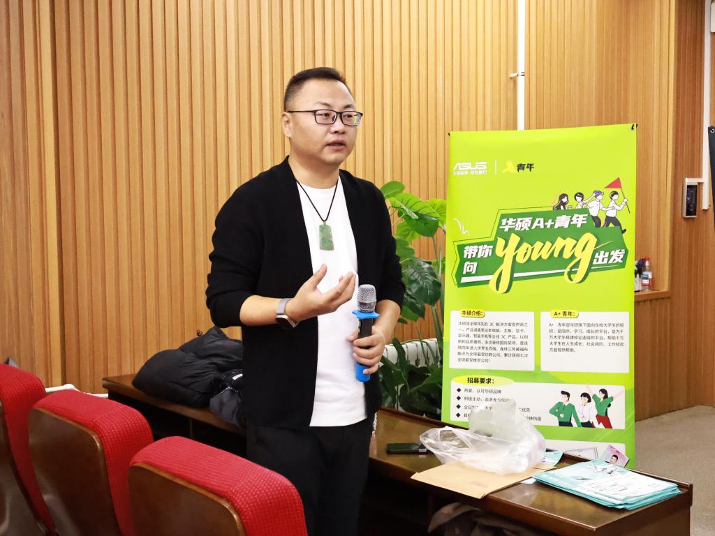签约暨揭牌仪式后,华硕电脑有限公司校园运营部经理王姝蓉为现代教育学院学子做主题宣讲,宣讲中她主要对华硕A+青年项目进行详细的介绍,并与现场师生进行互动,现场反响热烈。