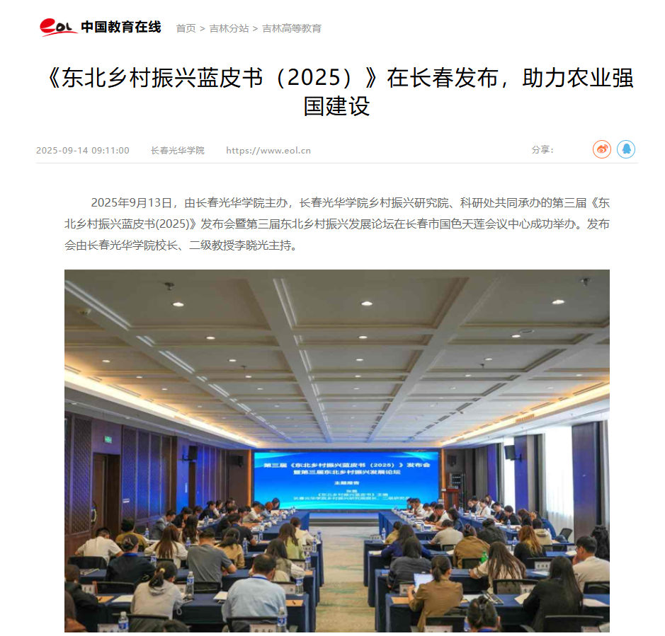 中国教育在线|《东北乡村振兴蓝皮书(2025)》在长春发布,助力农业强国建设