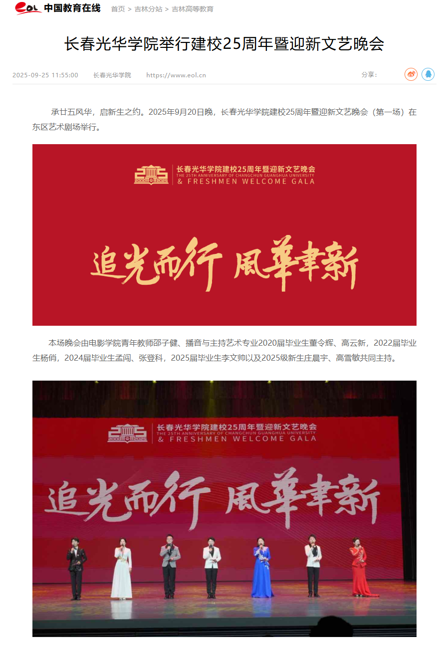 中国教育在线|长春光华学院举行建校25周年暨迎新文艺晚会