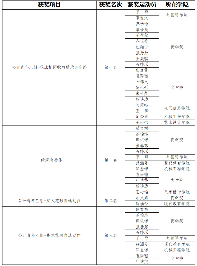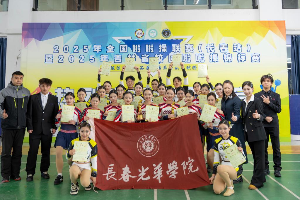 12月5日至7日,2025年全国啦啦操联赛(长春站)暨吉林省校园啦啦操锦标赛在长春工业大学体育馆成功举办。共有来自全国5省1直辖市182支代表队的4000余名运动员与教练员齐聚长春,我校代表队在领队刘光大,教练员杨洪、张春晓、潘铁夫的组织带领下,取得了公开青年乙组花球校园啦啦操示范套路(第三套)第一名、花球一级规定套路第一名、双人花球自选第二名、集体花球自选第三名的优异成绩。